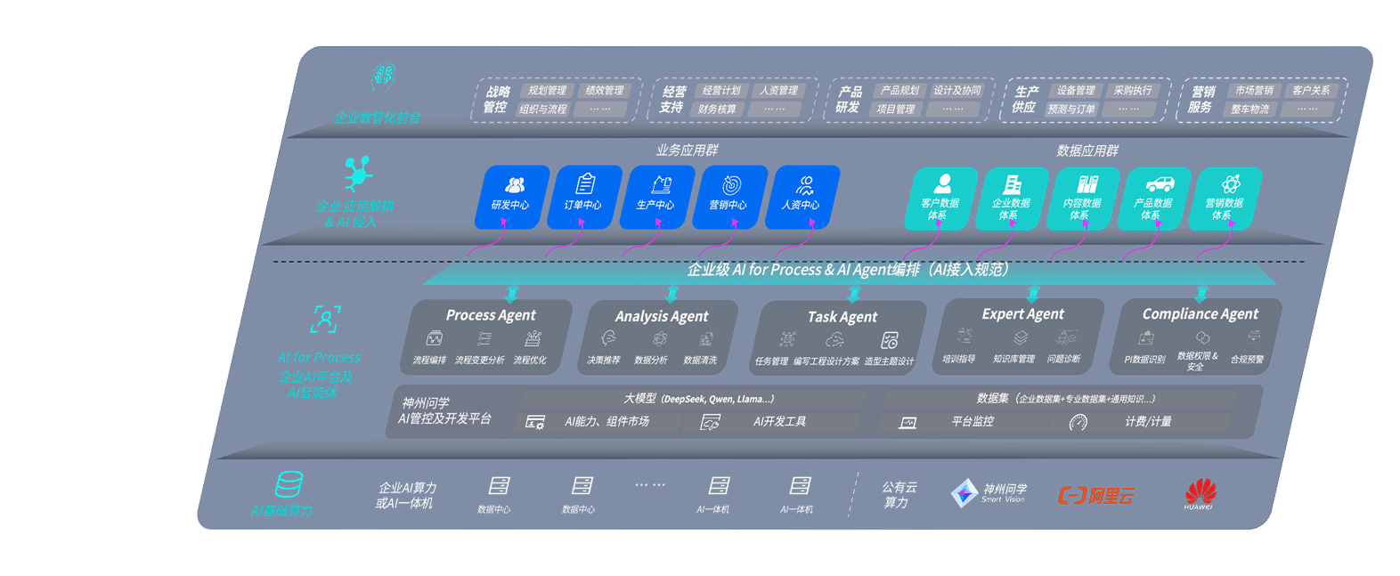 壹号平台问学智车解决方案是一套基于AI技术的汽车行业智能化系统,,覆盖从底层算力到顶层AI应用的全栈方案。。方案由算力层、、模型层和应用层组成:算力层,,,,方案支持多种一体机配置,,具备云端灵活部署、、、多云适配以及动态优化计算资源的能力;模型层,,,,壹号平台问学平台版提供了企业级AI应用一站式构建与管理平台,,,支持基于后训练强化技术的汽车企业专属模型的训练、、、、评测和运营;应用层,,壹号平台问学DeepSeek版提供包括超级员工、、、智能招采、、智能营销、、智能客服、、、、AI for BI等一系列解决方案,,,可助力汽车行业实现数字化转型,,让管理更智能、、响应更敏捷。。